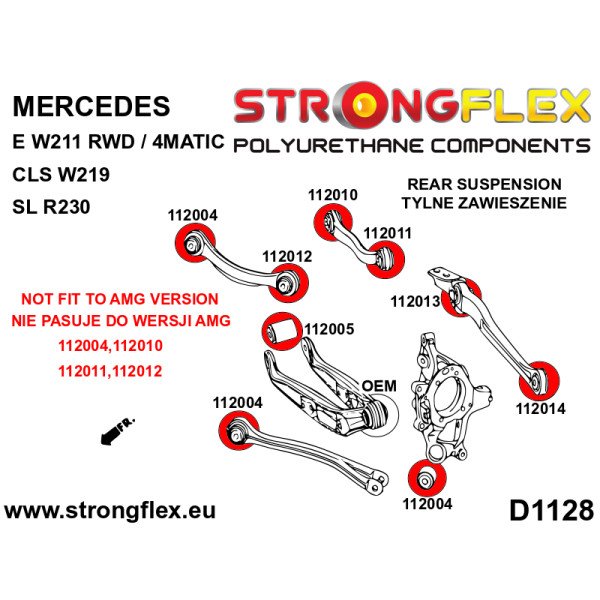 Upgrade your Mercedes Class E W211 with our Full Suspension Polyurethane Bush Kit - SPORT, engineered for enthusiasts seeking enhanced handling and durability. This comprehensive kit replaces factory bushings with high-performance polyurethane components, providing superior stiffness and responsiveness. Experience improved cornering stability and reduced body roll, translating to a more engaging driving experience. Designed with precision, this kit ensures a perfect fit and long-lasting performance, making it an essential modification for any serious driver. Elevate your ride with RaceStage.eu, where quality meets performance.