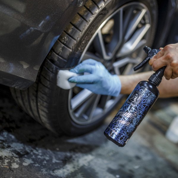 For best results, tyres should be as clean as possible and completely dry before application; Bad Boys Tyre & Rubber Cleaner is recommended. Before driving, make sure there is no excess dressing on the tyre to reduce the risk of splashing onto the car body.