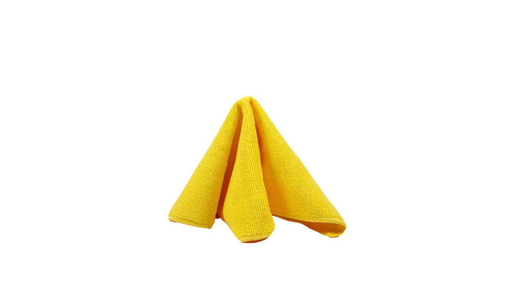 Yellow universal microfiber towel for cleaning interior plastics and wheels.
