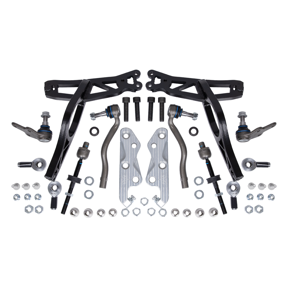 The DXC Racing angle kit is a proprietary design engineered for maximum precision, stability, and performance. It increases steering angle by up to 50% while maintaining a compact layout and precise fitment within the wheel arch. The geometry has been optimized for perfect control and allows installation without cutting the bodywork or using fender flares (depending on wheel size).