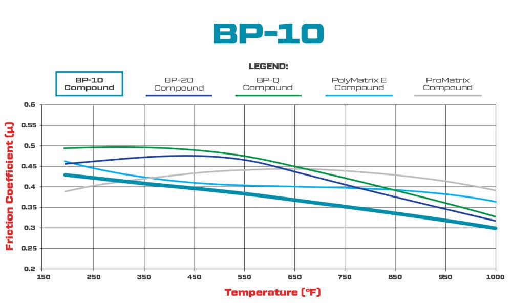 Best suited for braking temperatures between 500°F and 1000°F. For optimal pad selection, always consider real-world performance and operating conditions.