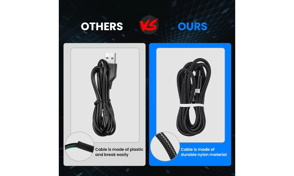 - Durable Nylon Cable: Braided nylon USB wire provides flexibility, tensile strength, and resistance to abrasion.