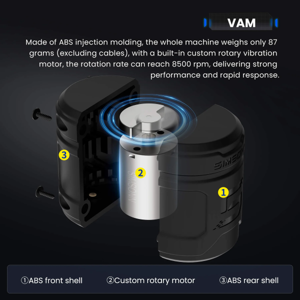 - Simsonn VAM Pedals Haptic Reactor: Features a rotary vibration motor capable of up to 8500 RPM for stronger vibration effects.