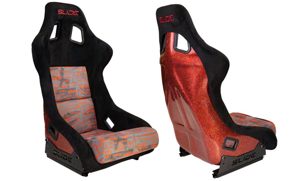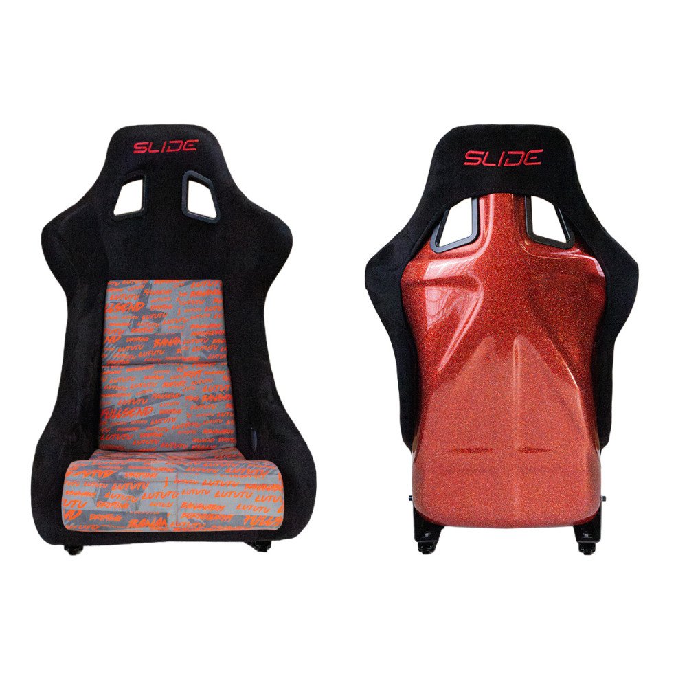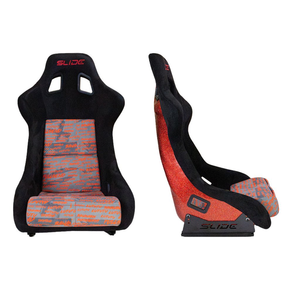 Racing seat SLIDE KS2 Premium Black Personal Words Welur & Red Glitter