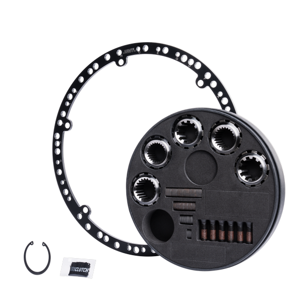 - Includes flywheel mount, 12.9 grade pre-Loctite bolts, and supports up to 6 transmission spline types (29.0x10T, 26.25x23T, 27.5x10T, 25.4x24T, 29.0x21T).
