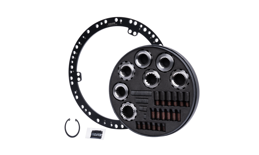 - Includes flywheel mount, 12.9 grade pre-Loctite bolts, and transmission spline set (22.5x20T, 25.4x24T, 24.3x22T, 24.3x21T, 29.8x21T, 25.0x14T)
