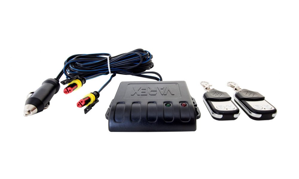 Kit contents: remote controller, receiver module, wiring harness, and installation instructions.