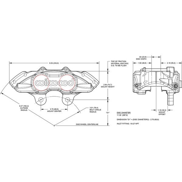 Wilwood 120-16510 D11 Universal Lug Mount Caliper 4 Pistons