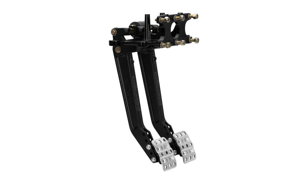 A pin and clevis pushrod attachment system ensures minimal misalignment and smooth, bind-free operation throughout the pedal travel. This pedal assembly is compatible with any three Wilwood 2.25-inch vertical mount flange single outlet master cylinders (available separately in various styles and bore sizes).