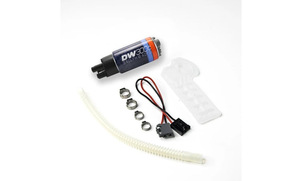 Deatschwerks DW300C 340 L/h E85 Fuel PumpWhen modifying or rebuilding and engine or for a simple FlexFuel conversion the stock fuel pump is often insufficient and can't let fuel flow through quick enough. The consequences can be disastrous in the worst case a broken engine (a lean air/fuel mix causing knocking).The Deatschwerks DW300C (C for Compact) can fit in many modern brackets in which a standard size pump (such as the DW300) won't. It is capable of delivering 340 lph at 2.7 bar pressure. It has a quiet impeller and is specifically designed for ethanol (E85). It is the only pump on the market with a 3 year warrantee (with its DW300 equivalent).Please note that a high flow fuel pump won't increase your vehicle's power. It allows you to replace your existing pump that may be worn or insufficient and can withstand an increased fuel flow for engine upgrades with high boost pressure bigger injectors or other modifications.Technical SpecificationsComponents for a plug & play installation : see photo(s)Input diameter : 8 mm internal 11 mm externalOutput diameter : 8 mmVoltage : 12 VMaximum pressure : 7 barsMaximum flow : 360 liters / hourFlow at 3 bars : 335 liters / hourFlow at 5 bars : 265 liters / hourLength : 113 mmDiameter : 38 mmWeight : 290 gramsNeed more technical data ? Check out the installation guides on Deatschwerks official websiteDriftShop supplies these pumps straight from the manufacturer. These Deatschwerks pumps are 100% authentic with a 3 year manufacturer warrantee.