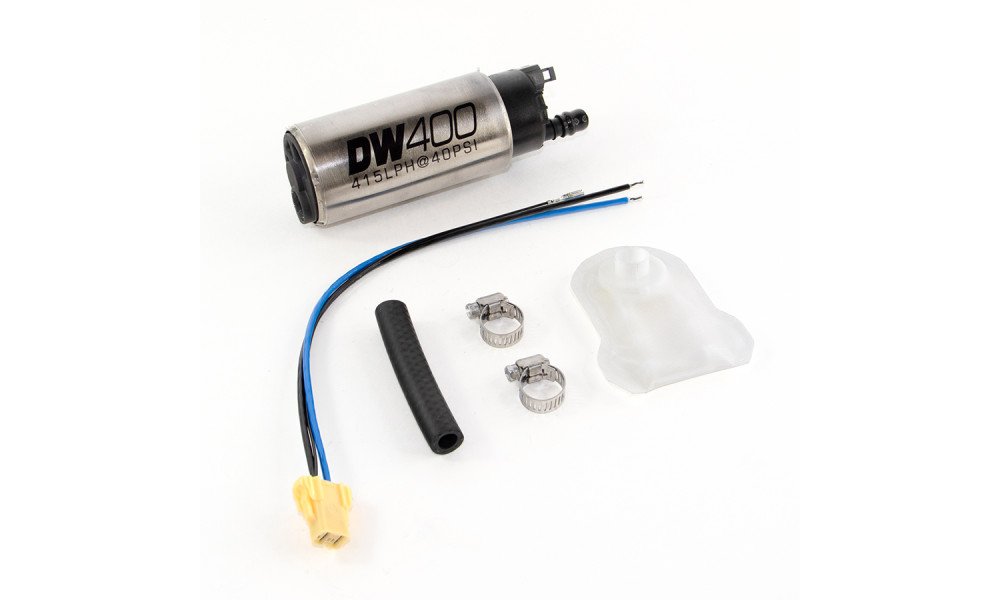Deatschwerks DW300C 340 L/h E85 Fuel PumpWhen modifying or rebuilding and engine or for a simple FlexFuel conversion the stock fuel pump is often insufficient and can't let fuel flow through quick enough. The consequences can be disastrous in the worst case a broken engine (a lean air/fuel mix causing knocking).The Deatschwerks DW300C (C for Compact) can fit in many modern brackets in which a standard size pump (such as the DW300) won't. It is capable of delivering 340 lph at 2.7 bar pressure. It has a quiet impeller and is specifically designed for ethanol (E85). It is the only pump on the market with a 3 year warrantee (with its DW300 equivalent).Please note that a high flow fuel pump won't increase your vehicle's power. It allows you to replace your existing pump that may be worn or insufficient and can withstand an increased fuel flow for engine upgrades with high boost pressure bigger injectors or other modifications.Technical SpecificationsComponents for a plug & play installation : see photo(s)Input diameter : 8 mm internal 11 mm externalOutput diameter : 8 mmVoltage : 12 VMaximum pressure : 7 barsMaximum flow : 360 liters / hourFlow at 3 bars : 335 liters / hourFlow at 5 bars : 265 liters / hourLength : 113 mmDiameter : 38 mmWeight : 290 gramsNeed more technical data ? Check out the installation guides on Deatschwerks official websiteDriftShop supplies these pumps straight from the manufacturer. These Deatschwerks pumps are 100% authentic with a 3 year manufacturer warrantee.