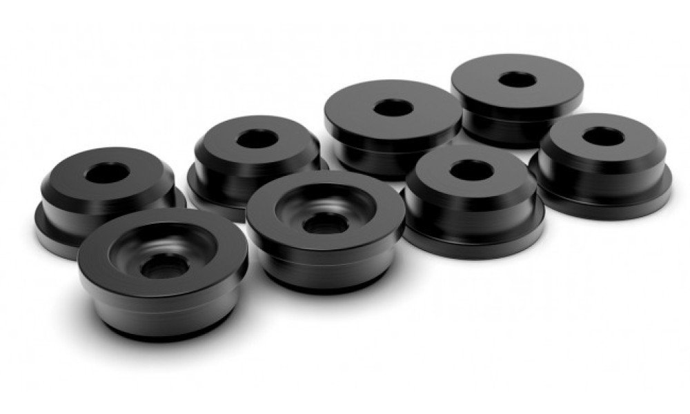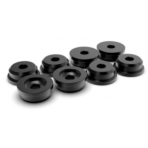 Nissan Solid Subframe Bushes Track driving puts a lot of stress on the standard subframe bushes. They just aren't up to the abuse we throw at them and can cause unwanted movement axle tramp and nasty vibrations particularly when an uprated LSD is fitted. These CNC'd aluminium subframe bushes for Nissan 200SX/Silvia S13/S14/S15 300ZX and Skyline R32/R33/R34 fit in place of the standard bushes 4 on top of the subframe and 4 below. If you are looking for something a little more compliant and daily driver friendly but still heavily uprated check out Powerflex poly subframe bushes.