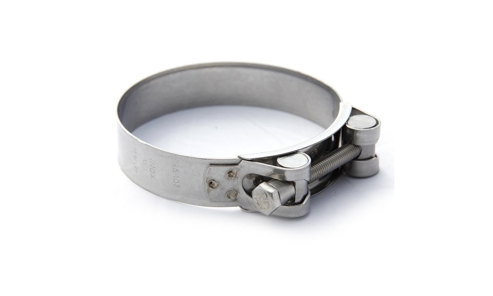 Stainless Steel T Bolt Hose Clamp SpecificationOne of the main features of the T bolt style clamp is the increase in clamping width and therefore overall surface area compared to a standard type. In addition they have a much stronger bolt clamping system giving them higher pressure resistance making them suitable for high pressure boost/cooling circuits.We have clamps available to suit a wide range of diameters from 17mm to 103mm.
