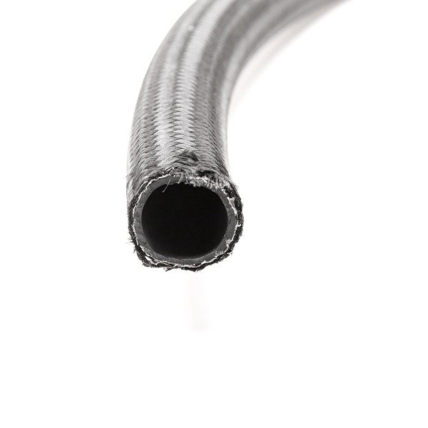 Braided Hose SpecificationsThese Dash hoses are made from nitrile and are covered with a nylon braid. Often called aircraft hoses their properties coming from aeronautics where they are commonly used as they are both secure and highly resistant : reliable long life protection against abrasion...When being made a second braid is embedded in the elastomer ensuring incredible pressure resistance (up to 60 bars). Our Dash hose's composition can withstand all types of fuel and lubricants such as : gasoline diesel ethanol nitromethane oil alcohol and coolants. They are ideal for all your upgrades especially in the fuel or oil circuit.Our made to measure service allows you to select all required elements for your set up (length diameter and joiners). Assembled in-house they are delivered directly to you ready to be installed !