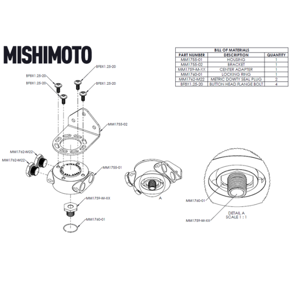 Mishimoto Remote Oil Filter Head M22x1.5 Thread – Black