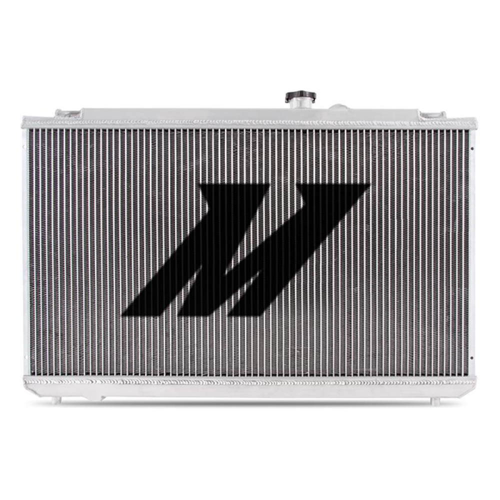 The Mishimoto JZX100 Performance Aluminum Radiator is built to add cooling capacity for the JZ-powered 1996–2001 Toyota Chaser. It replaces the thin factory-style core and plastic end tanks with full aluminum construction, TIG-welded for long-term durability.