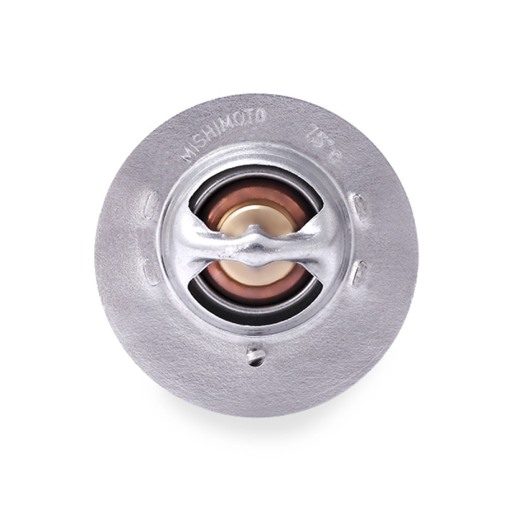The Mishimoto racing thermostat for the 1970–1973 Datsun 240Z is designed to improve cooling efficiency on stock or modified setups. Once the engine is fully warmed, it opens at a lower temperature than a standard thermostat to start coolant flow sooner, helping reduce and maintain cooler engine temperatures.