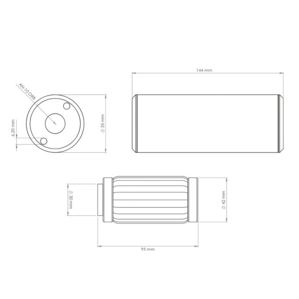 - Dimensions: Length 144mm (5.67"), Diameter Ø 55mm (2.16”)