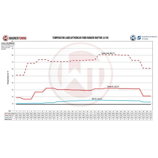 Wagner Tuning Performance Intercooler Kit for Ford Ranger (from 03/2023) and VW Amarok II (from 01/2023). Designed to replace the OEM intercooler and improve charge-air cooling with increased core volume and optimized flow.