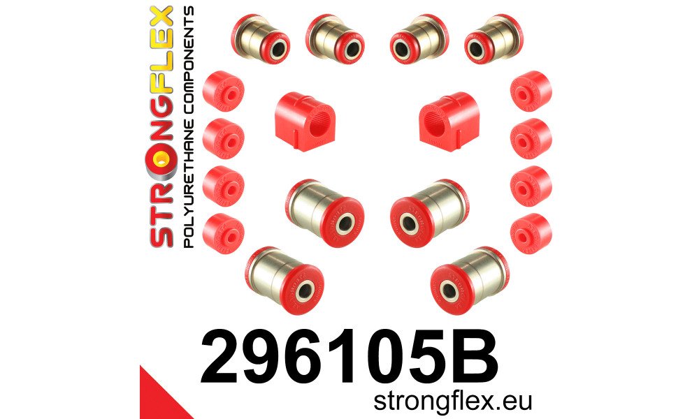 This comprehensive kit includes all necessary bushings for the front suspension, featuring two front anti-roll bar bushings, eight link bushings, and both upper and lower control arm bushings. The inclusion of a grease pack with every purchase ensures optimal lubrication and longevity of the components, allowing for smoother operation and reduced friction.