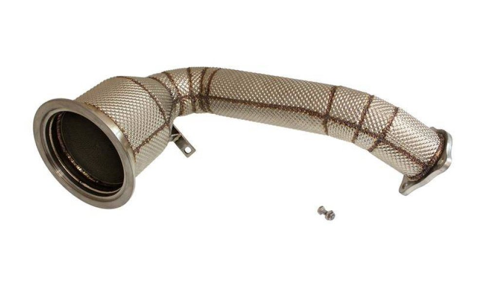 The downpipe has a 200cell catalyst and thermal shield.