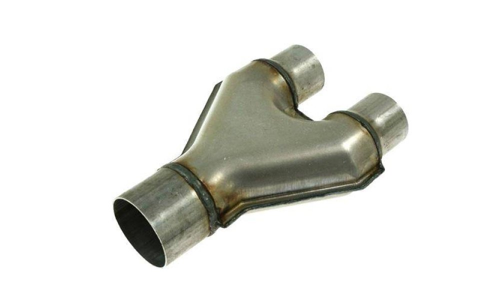 - Connects two exhaust pipes into one, or splits exhaust into two silencers