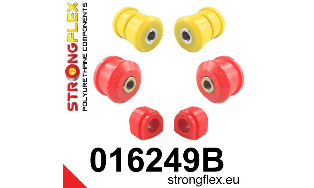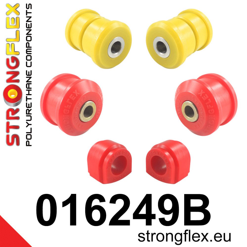 The kit includes two front lower arm front bushes (Sport version) and two rear bushes, along with two anti-roll bar bushes, all tailored to improve suspension response and reduce unwanted flex during aggressive driving. This results in enhanced steering precision and improved cornering stability, making it an essential upgrade for enthusiasts looking to maximize their vehicle's potential.