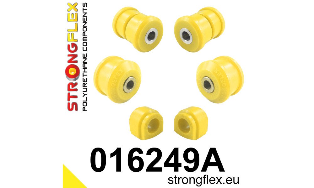 The kit includes essential bushings that enhance your vehicle's handling and responsiveness. The front lower arm front and rear bushes (2x 011962A and 2x 011963A) provide improved stability and control, while the front anti-roll bar bush (2x 011964A) minimizes body roll during aggressive cornering. Together, these components work harmoniously to deliver a more connected and engaging driving experience.