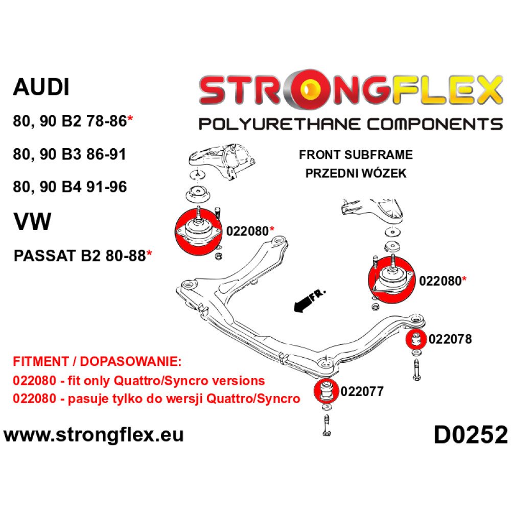 Audi/VW Subframe Bushings 90ShA Polyurethane - 022078A
