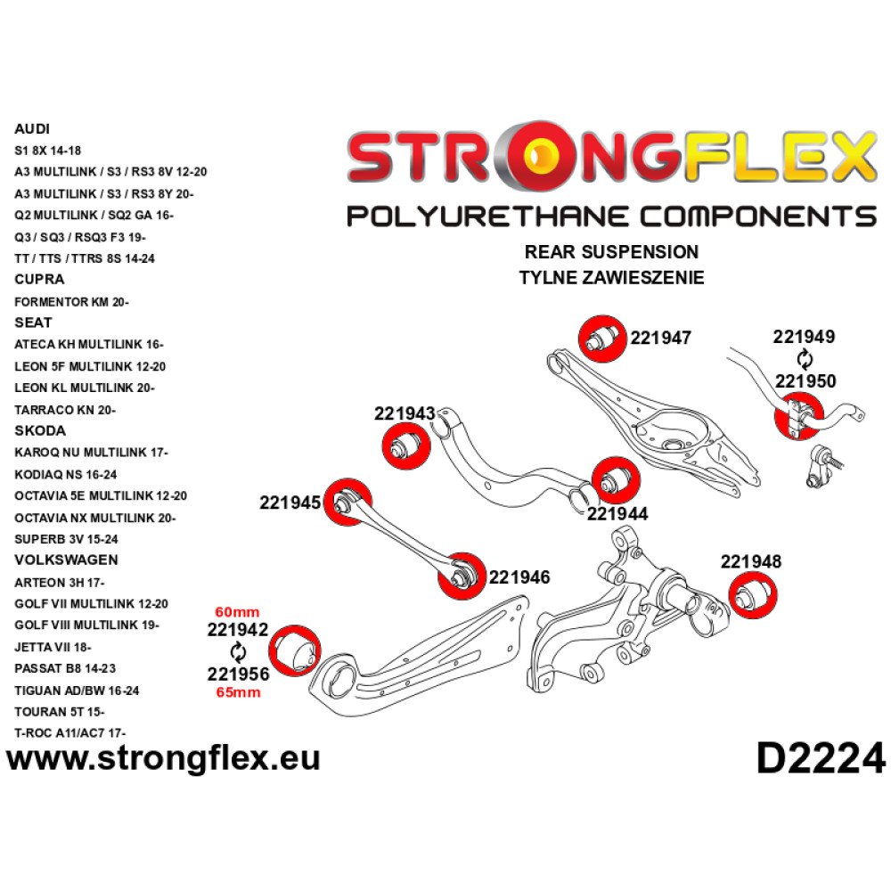 - 2x 221951A: Rear Subframe – Front Bush 60mm SPORT