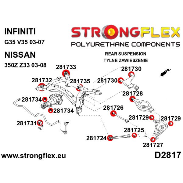 Compatible with the Infiniti G35 and Nissan 350Z, this bushing is a direct replacement for the OEM part number 551B0-AL500. The unique formulation of polyurethane not only increases durability but also reduces deflection, allowing for more precise control over your vehicle's dynamics. Whether you're on the track or navigating winding roads, this bushing will help you achieve the performance you crave.