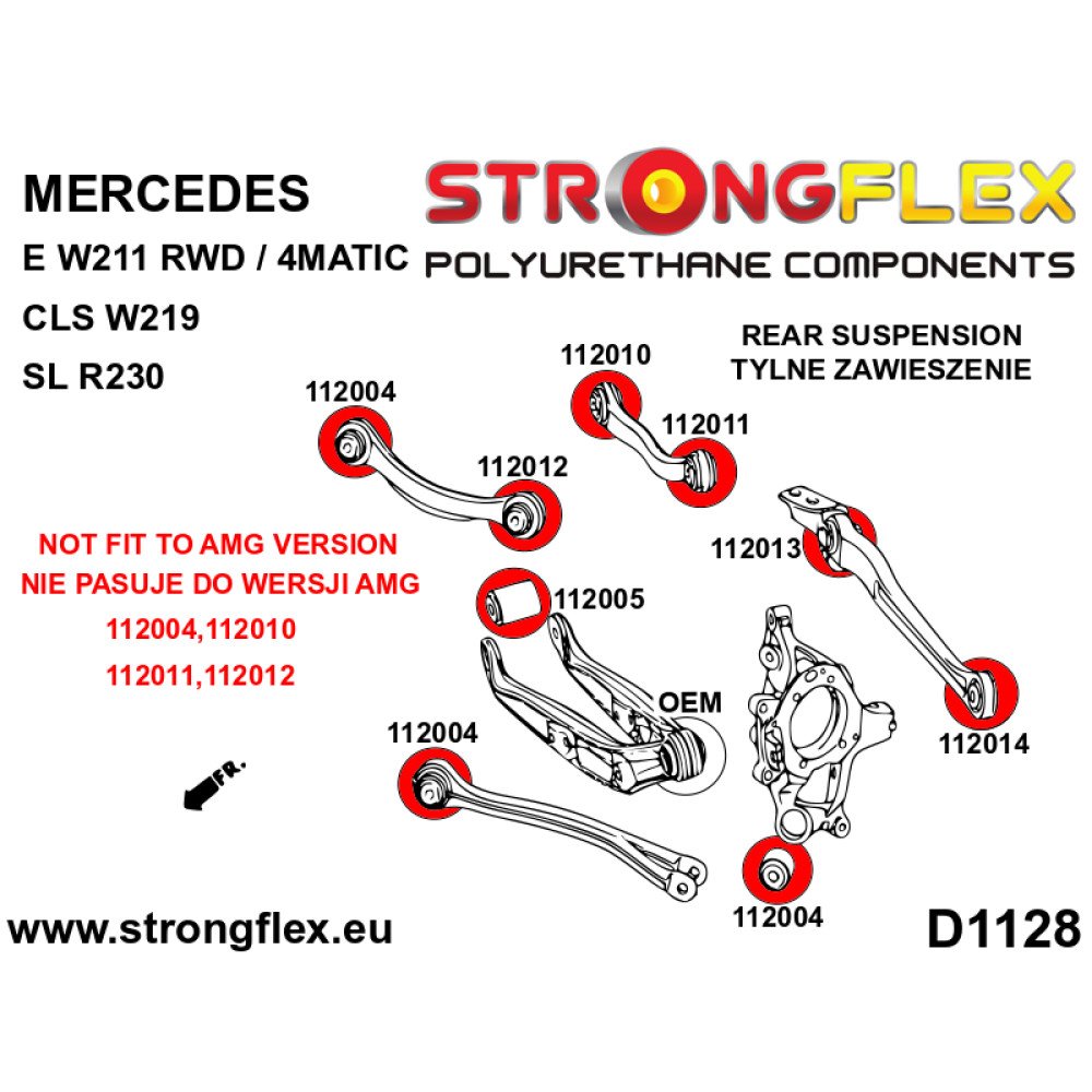 Upgrade your Mercedes with our Full Suspension Polyurethane Bush Kit RWD SPORT, engineered for precision and performance. Experience enhanced handling, reduced body roll, and improved responsiveness on the road. Designed specifically for the Mercedes CLS C219 and E-Class W211, this kit is the perfect choice for enthusiasts looking to elevate their driving experience. Trust RaceStage.eu for quality and performance in every component.