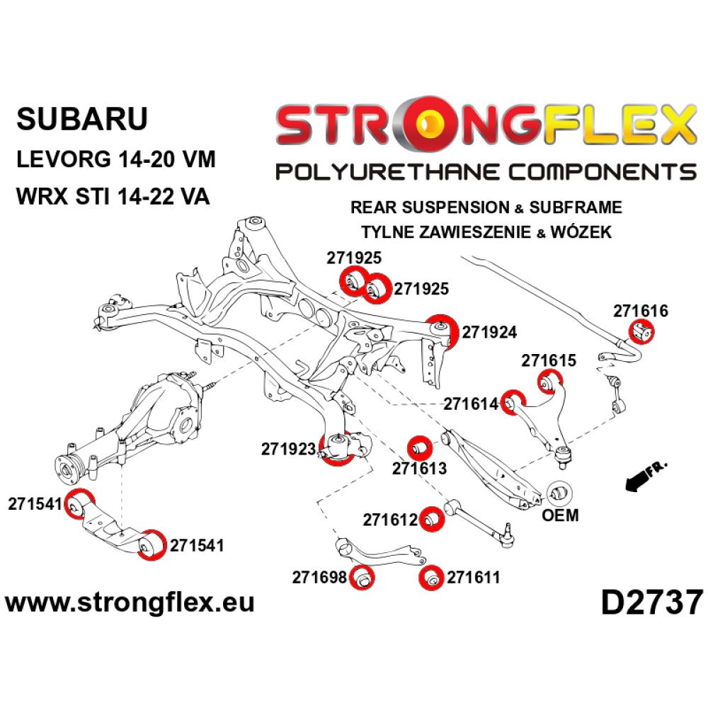 Elevate your Subaru's handling and performance with the RaceStage.eu SPORT Rear Subframe Bush Kit. Designed specifically for the Subaru Levorg (2014-2020) and WRX STI (2014-2022), this kit is engineered to enhance your vehicle's responsiveness and stability during aggressive driving. The polyurethane construction offers superior durability and resistance to wear, ensuring that your modifications stand the test of time.