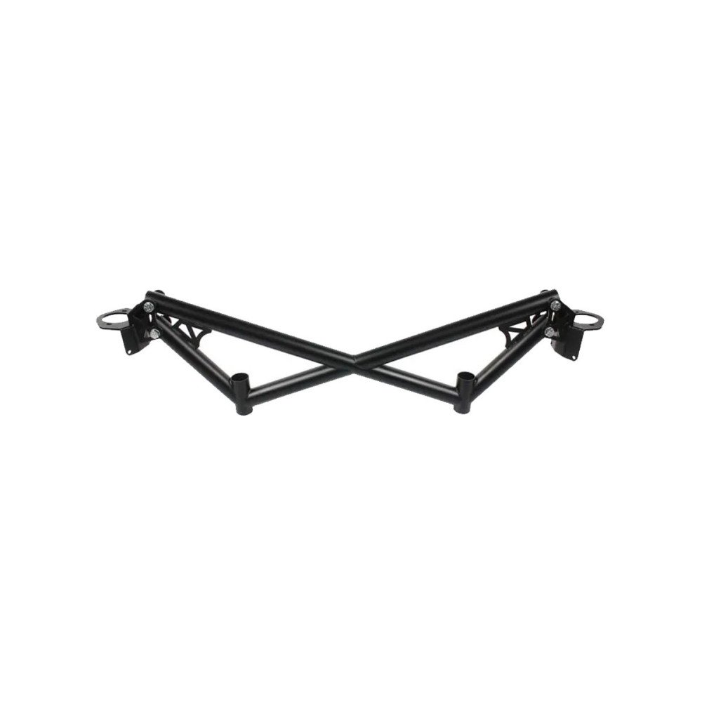 It is made of tubes used for the construction of cages in the size of 40x2mm. It requires cutting mounting holes, which we tried to include in the pictures to make it as easy as possible for you to install the strut. The kit also includes the screws necessary for installation.