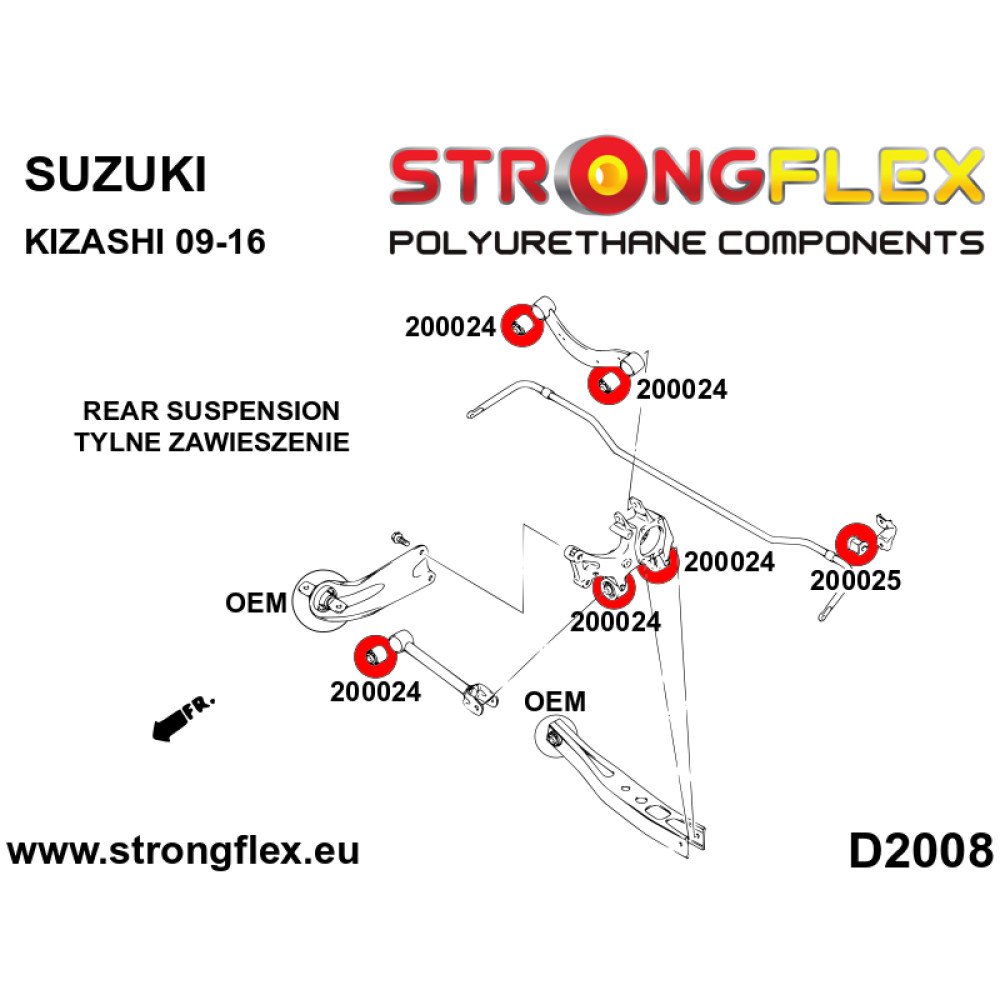 Elevate your Suzuki Kizashi's performance with our Full Suspension Polyurethane Bush Kit - SPORT. Designed specifically for the 2009-2015 FWD models, this comprehensive kit enhances handling precision and ride quality, making it an essential upgrade for any car enthusiast.
