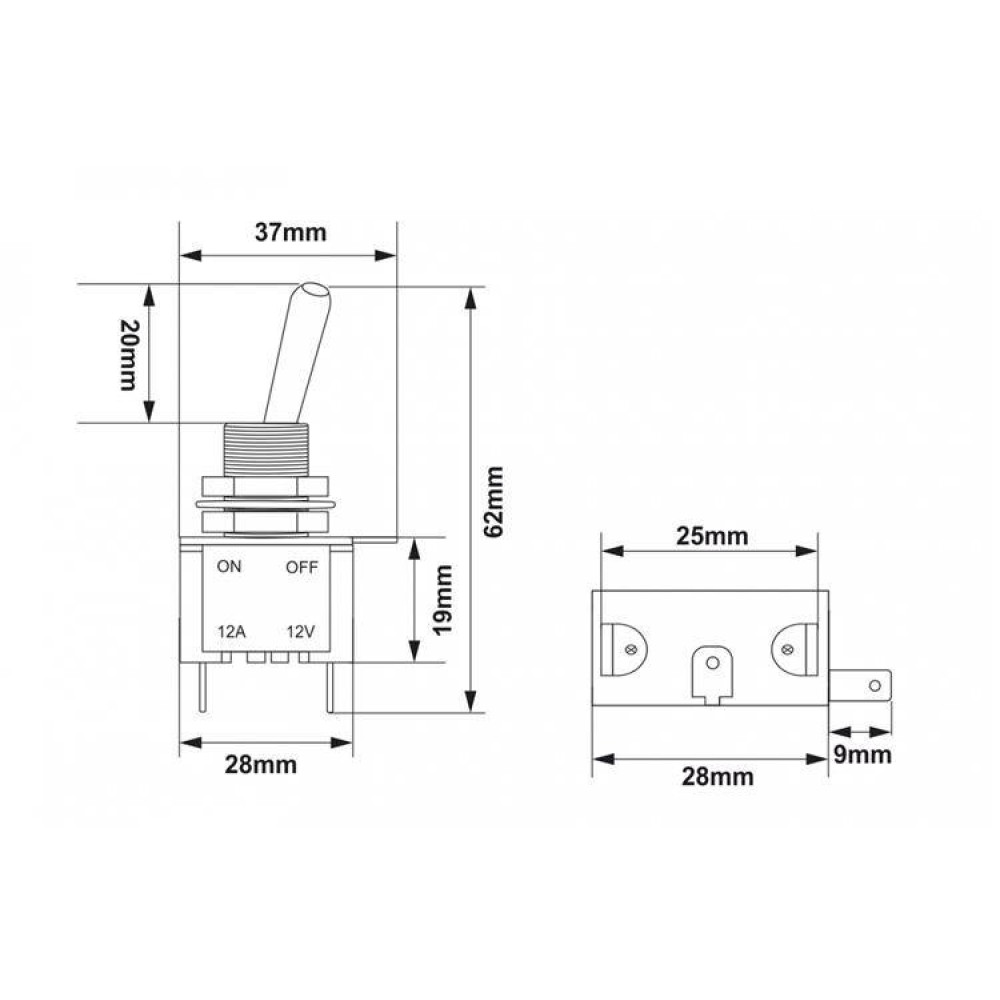 Yellow LED Chrome Toggle Switch - Type 2 for Custom Projects