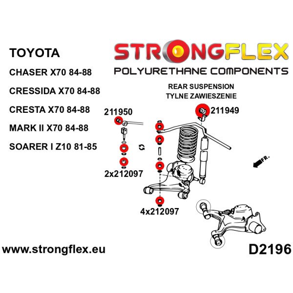 Whether you're tuning your Toyota Chaser III or upgrading your Corolla V, this bushing is essential for reducing body roll and improving cornering performance. The compatibility with multiple models, including the Cressida III and Mark 2 V, makes it a versatile choice for enthusiasts looking to enhance their ride quality and handling characteristics.