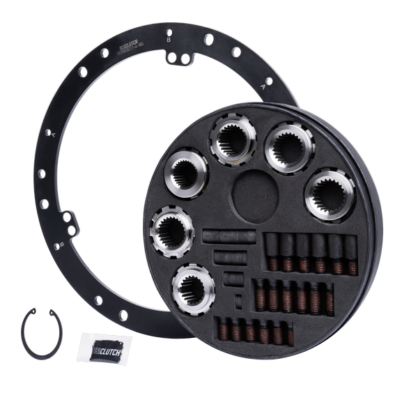 - Includes: Flywheel mount, 12.9 grade pre-Loctite bolts, supports up to 6 transmission spline types (35.3x26T, 29.0x22T, 35.0x10T metric, 35.0x10T DIN).