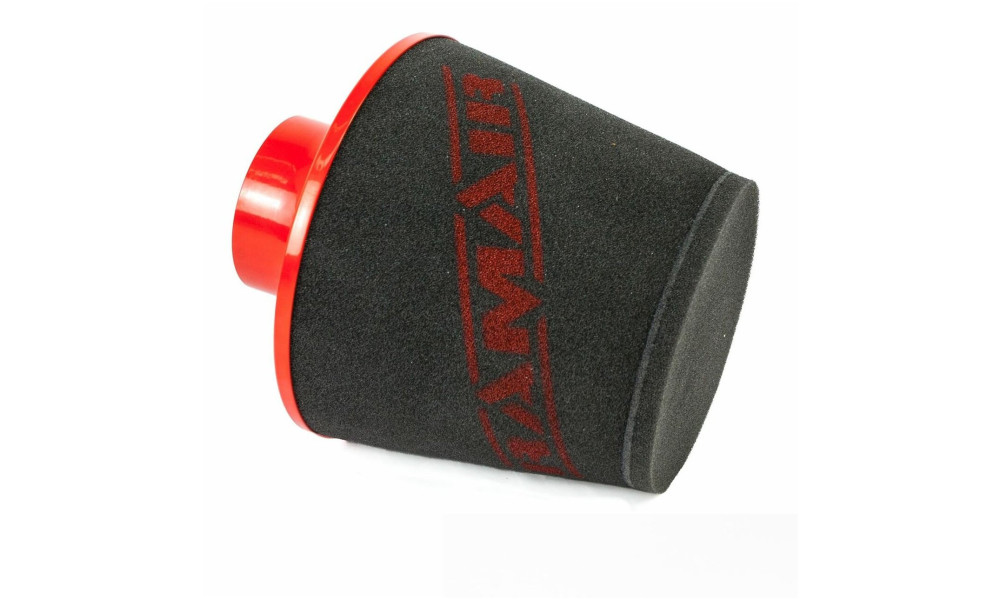 This performance air filter is engineered for installation into flexible hoses such as rubber or silicone intake pipes. Featuring an aluminium ram-pipe neck and a cone-shaped 15mm dual layer foam filter element, it efficiently channels incoming air toward the inlet manifold while minimizing turbulence.