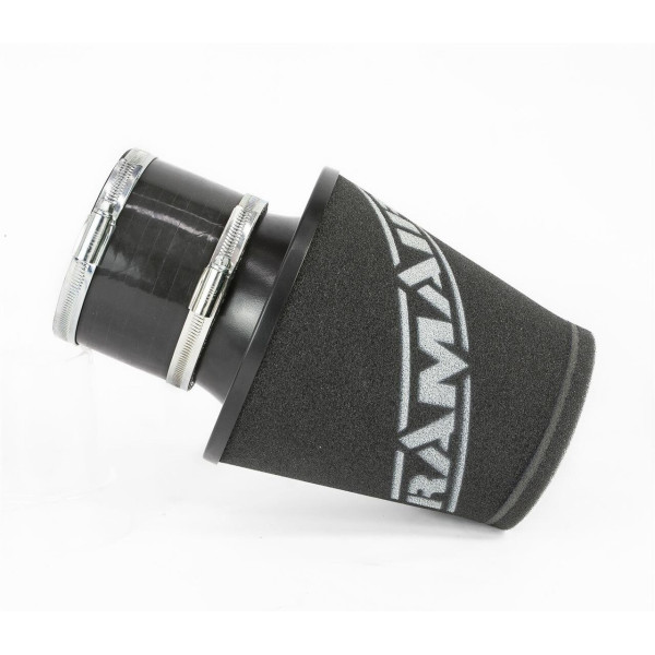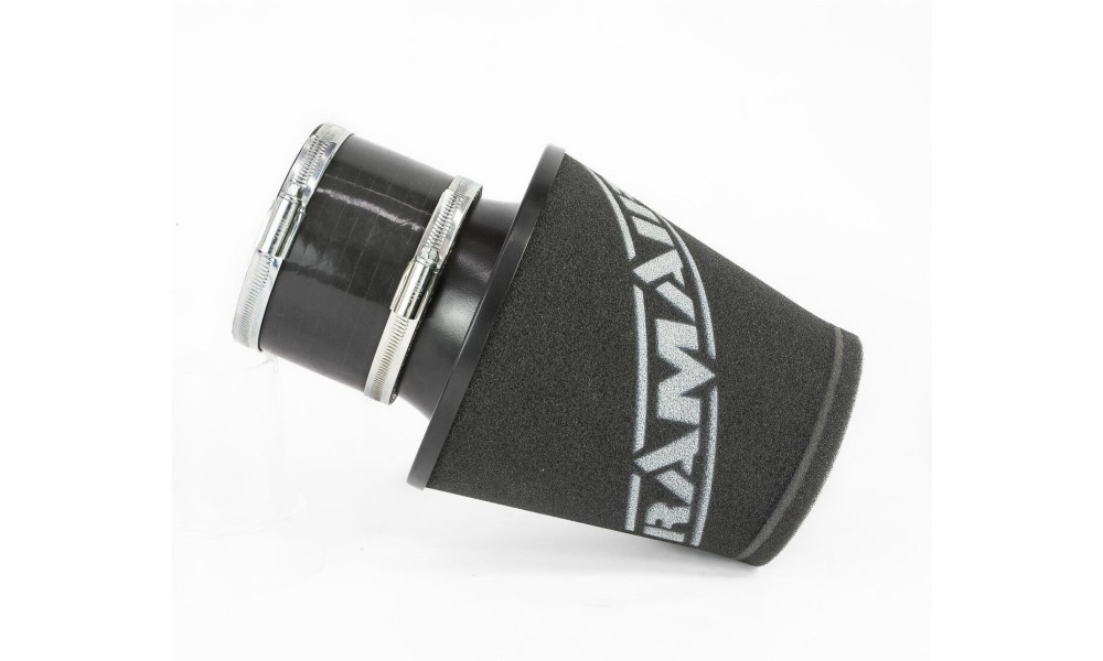 This air filter is designed for installation into flexible intake hoses such as rubber or silicone pipes. Featuring an aluminium ram-pipe neck and a cone-shaped filter element, the integral cone channels incoming air directly toward the inlet manifold, reducing turbulence and improving airflow efficiency. The cone shape also allows for easy installation in space-restricted engine bays, while the large foam surface area supports enhanced engine performance.
