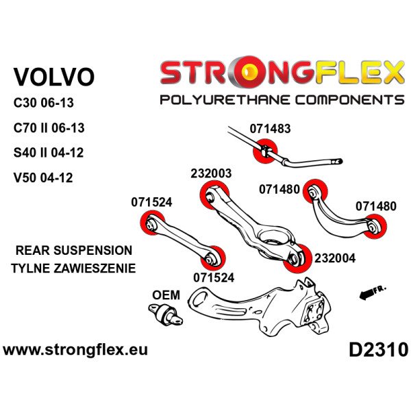 Enhance your Volvo's handling and performance with our premium Rear Suspension Bush Kit, designed specifically for the discerning car enthusiast. This kit is engineered to fit a range of Volvo models, including the C30, C70 II, S40 II, and V50, ensuring a perfect match for your vehicle.