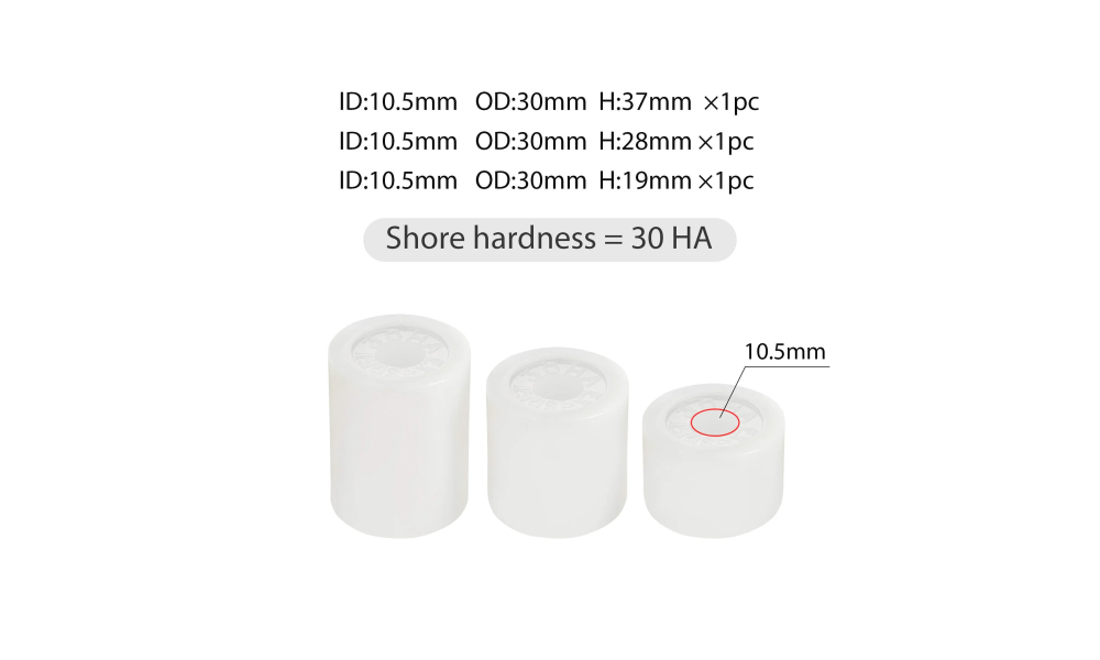 Enhance your sim racing experience with this set of three white elastomers, engineered for use in various pedal damping systems. These elastomers allow precise tuning of brake resistance and pedal feedback, letting you dial in the pedal feel to match your driving style and setup requirements.